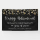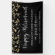 Celebrate a retiring employee with this personalized banner sign in black, gold and white with gold confetti, streamers and lights, a modern, chic calligraphy script typography title HAPPY RETIREMENT and personalized with their name, years of service and company or organization name or other custom text. Contact the designer via Zazzle Chat or makeitaboutyoustore@gmail.com if you'd like this design modified or help with another color scheme, on another product or would like coordinating items.