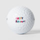 A close-up shot of a white golf ball with the words "Happy Retirement" printed on it in colorful letters. The word "HAPPY" is printed in pink, green, and orange letters, while the word "Retirement" is printed in red, blue, and pink letters. The golf ball is sitting on a white surface. The lighting is soft and diffused, and the composition is simple and clean.