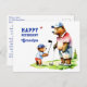 Happy retirement grandpa golf themed postcard, cute grandpa bear and a cub bear playing golf, appreciation present to grandparent from a boy