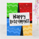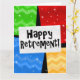 Wish the employee well who has completed a long history of work and success. Colorful and bright blocks with confetti stars and fun text in red, yellow-orange, bright blue and green. Great fun retirement party gifts and favors