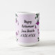 Commemorate an employee, coworker, or family member's retirement with a beautiful purple floral pattern morning coffee or tea mug keepsake. This design features bright purple flowers that wind and curve their way along the mug. The bright purple of the flowers is complimented by the dark green leaves and stems with the entire design set against a light purple background. "Happy Retirement", the retiree's name, and the years of service can quickly and easily be customized to suit your needs.