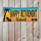 Wish a happy retirement with a beach theme: palm tree, beach chair, sunglasses, a tiki font, and a blue and gold blend background. Edit the name to your guest of honor. Great for someone who loves the beach or is retiring to Florida, or just for a fun retirement party theme.