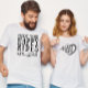 The newlywed t-shirt for hubby with the sign "Enjoy your happy rides with me" is a fun and playful way to express his enthusiasm for embarking on a journey of happiness with his partner. The wording captures the essence of companionship and shared experiences, symbolizing the couple's commitment to making every moment together a joyful ride. It adds a touch of euphoria to the wedding celebration while conveying the groom's eagerness to embrace the future with his beloved