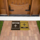 Welcome home with our charming doormat, designed especially for pilot families or aviation enthusiasts! This unique doormat features a simple illustration of an airplane gracefully landing on the left side, paired with a hanging sign that says "Happy" while an airplane takes off on the right, accompanied by a hanging sign that says "Sad." Customize the "Happy" and "Sad" words with a different saying to make it uniquely yours! Perfect as a housewarming present or for the newlyweds for their wedding.