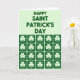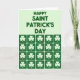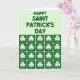 This greeting card features a soft pastel lime-green background that sets a gentle, friendly mood for St. Patrick’s Day 💚. Across the top, the message “HAPPY SAINT PATRICK’S DAY” sits centered in rounded sans-serif letters, colored deep emerald green with a slight shadow that makes it stand out. The roomy spacing above the text gives it a calm, open feel, like an easy hello between close friends. Below, the design shifts into a neat grid that feels steady and reassuring, as if two people are quietly in step with each other. Twenty shamrock icons appear in four rows of five, each white clover centered inside a deep-green square tile. The tiles have rounded corners and soft drop shadows, adding a bit of depth while keeping the layout orderly and inviting ☘️. The lower half reads like a patterned blanket of green squares, each one holding a crisp white shamrock against the smooth background.