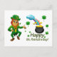 Happy Saint Patrick's Day Leprechaun Rainbow Postcard