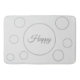 Happy seamless circles on silver colored background bath mat. Happy text can be personalized.
