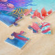 Introducing a Happy Shark Jigsaw Puzzle, a fun and whimsical piece that puts a lighthearted spin on one of the ocean's most fearsome predators. This puzzle features a big, smiling shark with a mouth full of teeth, sure to delight and entertain puzzle enthusiasts of all ages.