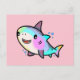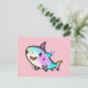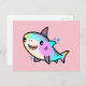 Happy smiling baby shark with bubbles. postcard