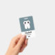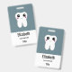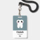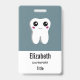 Personalized name badge with a drawing of a big white tooth with a cute kawaii smile and big happy eyes.