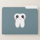 Folder trio with a drawing of a big white tooth with a cute kawaii smile and big happy eyes.