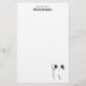 Stationery paper with a drawing of a big white tooth with a cute kawaii smile and big happy eyes.