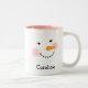 Happy Snowman Face Eyelashes Pink Name Two-Tone Coffee Mug