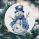 Happy Snowman Snowflakes Blue White Chinoiserie Invitation