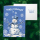 Happy Snowman Snowflakes Blue White Personalized Holiday Card