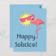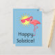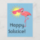 Celebrate the longest day of the year with this bright whimsical summer solstice postcard featuring a cheerful pink flamingo nuzzling a smiling sun in oversized hot pink sunglasses. Set against a sky blue background with “Happy Solstice!” in stylized retro lettering, this playful postcard design captures the joy and warmth of summer solstice. Perfect for sending seasonal greetings, marking a nature-based celebration, or connecting with others who observe the turning of the wheel of the year. A fun and lighthearted way to honor the sun’s peak for solstice observers, nature lovers, yoga and wellness communities, and anyone who embraces seasonal transitions.