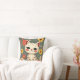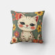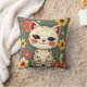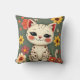Happy Spotted Kitty with Flowers Throw Pillow