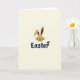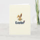 This card features a simple digital illustration on a pale cream background, centered on a long-eared bunny in warm golden-tan with deeper reddish-brown accents inside the ears 🐰. The bunny’s round face has small dark blue dot eyes, a tiny triangular nose, and a curved smile that feels like a gentle, friendly greeting. Thin straight whisker lines on each side add a light touch, like the bunny is leaning in with quiet affection. Below the face, the word “Easter” sits centered in a rounded sans-serif style, colored deep navy blue to match the facial details. The text feels close to the character, as if the bunny is smiling down at it like a note meant for someone special 🌷. A small leaf shape replaces the dot above the “i,” colored in the same reddish-brown as the inner ears for a sweet nature accent. Subtle shading on the ears gives a slight sense of depth against the soft background.