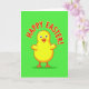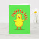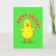 This design shows a round, sunny yellow bird centered on an electric green background, its soft orange outline giving the little figure a gentle glow like early spring 🌷. Big black eyes with tiny white highlights and a small tangerine beak form a sweet, almost bashful smile, as if it’s sharing a quiet moment with someone close by. The tiny wing shapes sit at its sides like little arms ready for a friendly hug, and the slim two-toed feet in matching orange keep it grounded. A faint shadow beneath the body adds depth without crowding the simple scene. Across the top, a curved line of text arches above the bird in red letters with a yellow outline, standing out clearly against the green. The strong contrast between green, yellow, and orange gives the picture a cheerful, affectionate energy, like a note passed between friends 🐰. The background stays a solid, bright green field while the red-and-yellow arched lettering sits above the bird’s head.