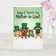 Designed with a horizontal row of four cartoon-style animals peeking over a white ledge, this St. Patrick’s Day design feels like a friendly little group photo 💚. Two dogs sit on the left—one with an open-mouthed grin and bright eyes, the other with a more serious look and a darker snout—while an orange tabby and a gray striped cat lean in beside them as if sharing a cozy moment. The background is a soft gradient of spring green that keeps the scene light and airy, like early morning sunlight. Each animal wears a tall emerald top hat with a gold rectangular buckle, and the gray striped cat adds a green bow tie that hints at a sweet, thoughtful bond with the others ☘️. Across the top, large curved lettering in deep forest green spells out a warm greeting, centered above their heads and arching like a banner. The animals’ wide eyes and close spacing make them look like they’re posing together, with a gentle, affectionate energy in the way they cluster shoulder to shoulder. The white ledge runs straight along the bottom, with their paws resting on its edge beneath the green hats and gold buckles.