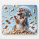 A joyful squirrel stands atop a pile of peanuts with a wide grin, surrounded by peanuts falling around it