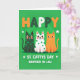 This card shows three stylized cats sitting side by side on an emerald green background that shifts in tone, their wide eyes and soft pink cheeks giving them a sweet, friendly look 💚. The left cat is deep green with lighter green polka dots, the middle cat is white with matching green dots, and the right cat is solid orange, and the trio feels like a close little group leaning into the holiday together. Near the top, the word “HAPPY” sits centered in thick, rounded letters, colored with a mix of white, dark green, and orange like the Irish flag. The cats’ simple shapes and gentle shading add a cozy, affectionate mood, like they’re posing for someone they care about. Along the bottom, “ST. CATTYS DAY” is written in large white lettering, with small white shamrocks on either side ☘️. Just beneath that, “BROTHER IN LAW” appears in smaller text, neatly aligned and easy to spot. The background stays uncluttered so the cats and lettering stand out, and the shamrocks look like small white cutouts against the green field. The final details include the white shamrocks flanking the bottom line and the soft blush on each cat’s cheeks.