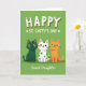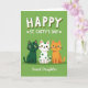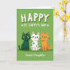 This design shows three cartoon cats grouped in the middle of a rich green background, their round faces and wide eyes giving them a sweet, friendly closeness 💚. An emerald-green cat sits beside a white cat covered in green polka dots with a striped tail, and a golden-orange cat leans in so the trio feels like they’re posing for a cozy photo together. Across the top, the phrase “HAPPY ST. CATTY’S DAY” appears in white, set on a slight tilt with a soft shadow that lifts it from the background. Small green shamrocks are tucked into the word “HAPPY,” tying the message to St. Patrick’s Day with a cute visual wink ☘️. Near the bottom, “Sweet Daughter” is placed beneath the cats, acting like a gentle caption that frames them as a loving little group. The flat shapes and simple outlines keep the focus on their expressions, especially the way the middle cat’s dotted coat draws your eye back to the others. The orange cat’s warm color contrasts with the greens, while the white cat’s green spots and striped tail add extra pattern detail against the solid backdrop.