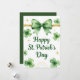 Celebrate St. Patrick’s Day with this festive greeting card featuring a cheerful Irish-inspired design. Perfect for friends, family, coworkers, or clients, this card is ideal for spreading luck, joy, and shamrock-filled vibes on March 17th. A great choice for gifting, mailing, or adding to a St. Patrick’s Day celebration.