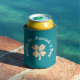 Happy St. Patrick`s Day Shamrock Clover Can Cooler. A Happy St. Patrick`s Day text with Irish hand-drawn shamrock for luck. Clover has four leaves. You can change the text.