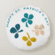 Happy St. Patrick`s Day Shamrock Clover Round Pillow. A Happy St. Patrick`s Day text with Irish shamrock in different colors for luck. Clover has four leaves. You can change the text.