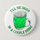 Ill be Irish in a couple beers. Funny St Patricks Day green beer humor button.