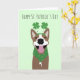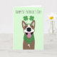 Brown dog with St. Patrick's day attire. Kiss Me I'm Irish.