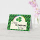 This St. Patrick's Day greeting card features a shamrock pattern on a black background with the text: Happy St. Patrick's Day! The inside features customizable text for you to add a personal message.
