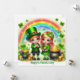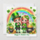 Happy St Patrick's Holiday Card with a Cute Boy and Girl, Pots of Gold, Clovers and a Rainbow