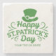 Super festive coaster featuring a "Happy St. Patricks Day" typography design with a lucky green leprechaun hat. Personalize by adding your name, party details or other custom text (or delete). Perfect for your St Patrick's Day party or everyday cocktails.