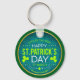 The design displays a round, green St. Patrick's Day. The Keychains features a dark green background with a lighter green border and gold/yellow text and design elements.
