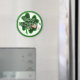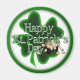 Luck four leaf clover and pot of gold behind the HAPPY ST PATRICK'S DAY text. Round magnets are available in several sizes. Find the St. Paddy's Day magnet size that is best for you!