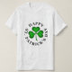 A T-Shirt with a green shamrock clover design and a black "HAPPY ST. PATRICK'S DAY" text around it.
