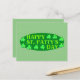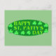 Cute, oval with shamrocks and a Happy St.Patty's Day greeting is featured on the front of this postcard. Back of postcard has a picture of a pot of gold with a rainbow and a shamrock, with message, "May Irish Luck be yours today"! A great way to send St.Pat's Day greetings to family and friends.