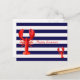 Classic nautical summer theme with blue and white stripes and red lobsters. Red letters and the text: Happy summer.