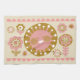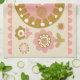 Scandi, folk art inspired, tea towel design. Featuring a happy sun with floral motifs.
