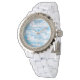 An all over print scene of happy sunny clouds soft baby blue sky all over print background custom fashion watch gift for yourself or for someone special on your list, sure to make an impression on any occasions. Personalize it with text and a monogram.