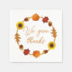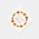 Thanksgiving or autumn party napkins with custom text. A circle of fall leaves, pumpkins, acorns and sunflowers makes a border for the printed text - sample is "Happy Thanksgiving". Use in a classroom, for a fall wedding reception, or any special gathering at this time of year. Napkins have many options including color, style and size.