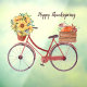 Rustic bicycle, sunflowers and pumpkin Happy Thanksgiving window cling.