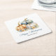 Happy Thanksgiving Blue Orange Gold Pumpkins Square Paper Coaster