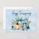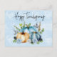 Happy Thanksgiving Blue Watercolor Pumpkin Postcard