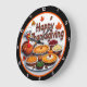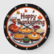 Happy Thanksgiving Cartoon Turkey Dinner Large Clock