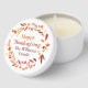 These beautiful Happy Thanksgiving mini candles feature a pretty autumn wreath of brown, orange, and red leaves around your personalized text. Customize this seasonal party favor with your last name and year in lovely fall colors.
