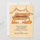 A Happy Thanksgiving Day message printed on wood with a streamer canopy and pumpkins. The card is easy to customize with your wording, font, font color, paper shape options and choice of six paper types.