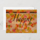 Happy Thanksgiving Fall Maple Leaves On Barn Wood Postcard